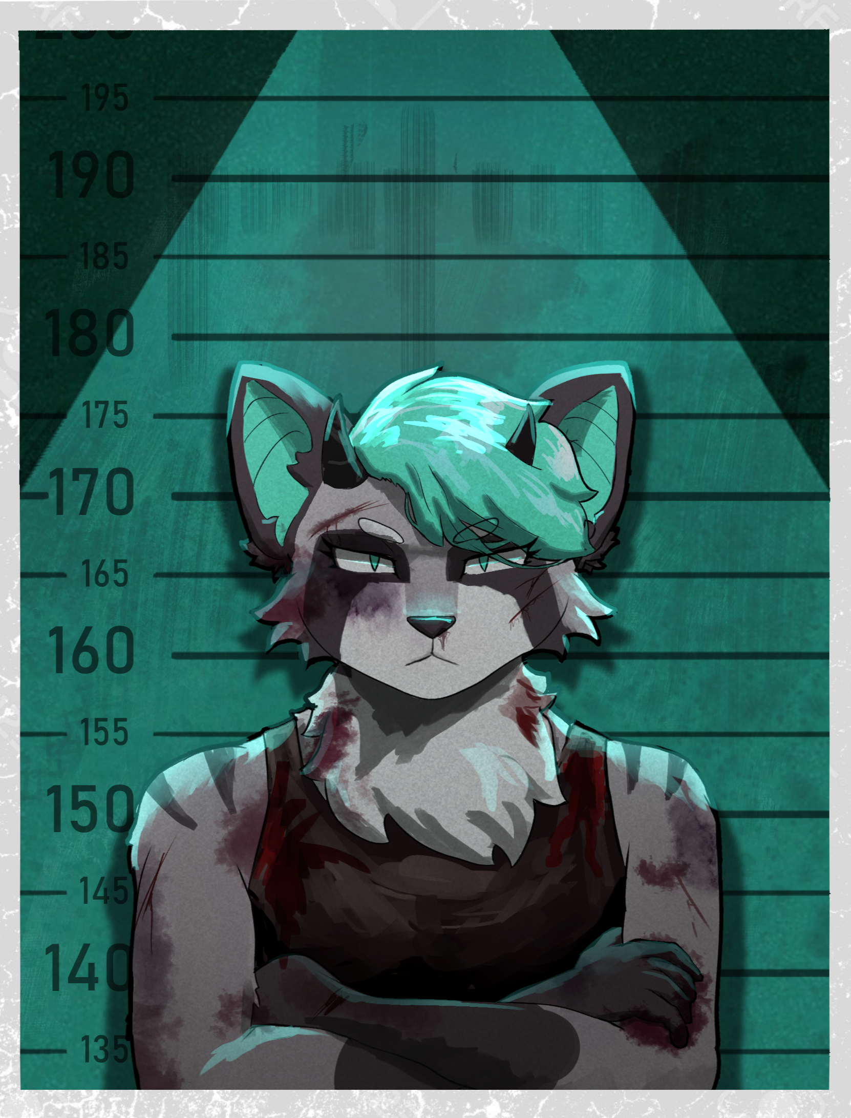 $50 - A custom mugshot for your character, which includes a clean image with transparent bg alt, worn photograph, and ID badge variants. You can customized what the badge looks like, as well as the background wall.